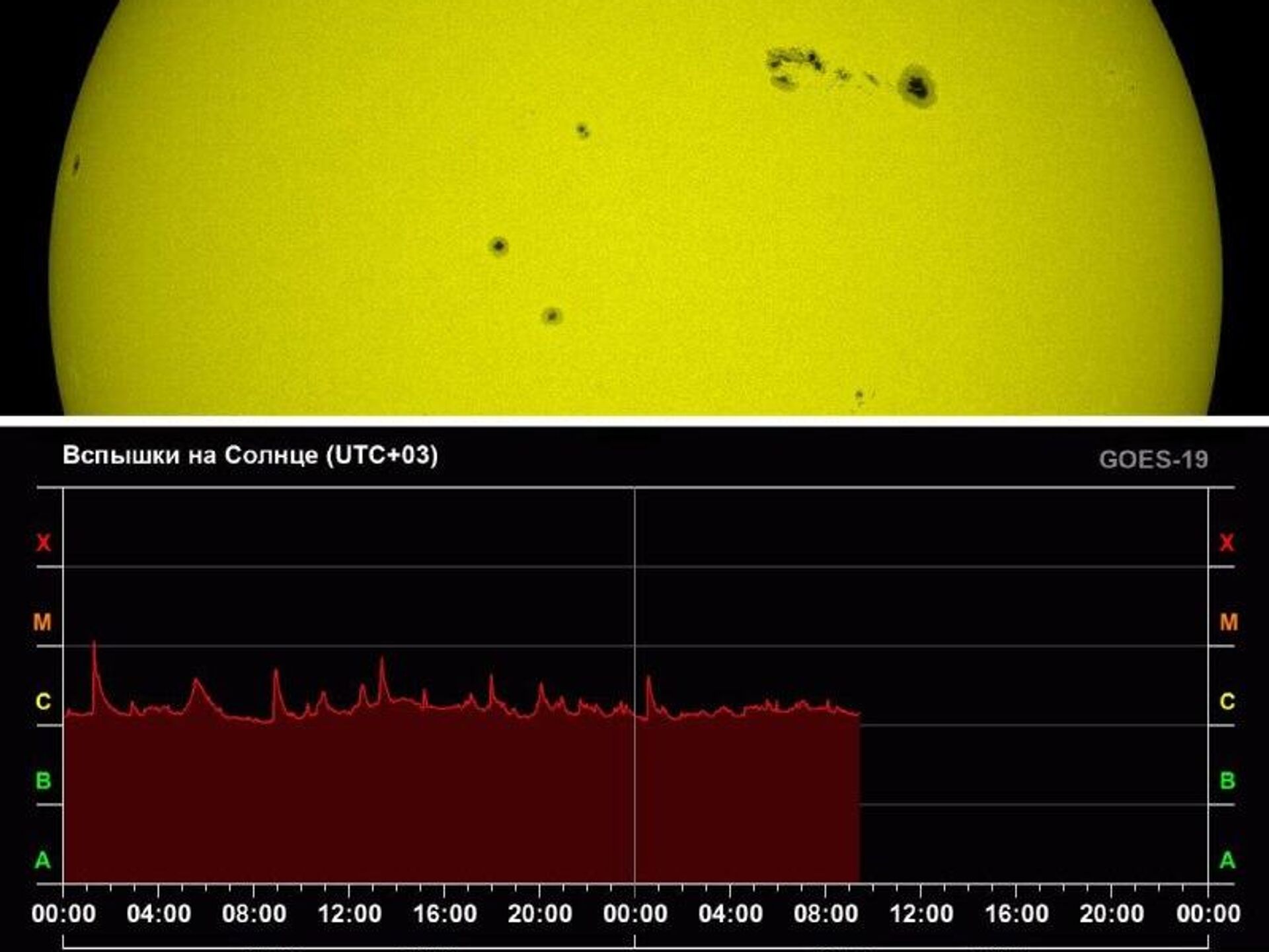 روز پنجشنبه، ده فوران نیرومند از ردهٔ «اِم» — که دومین رده از نظر توان است — در خورشید روی داد.