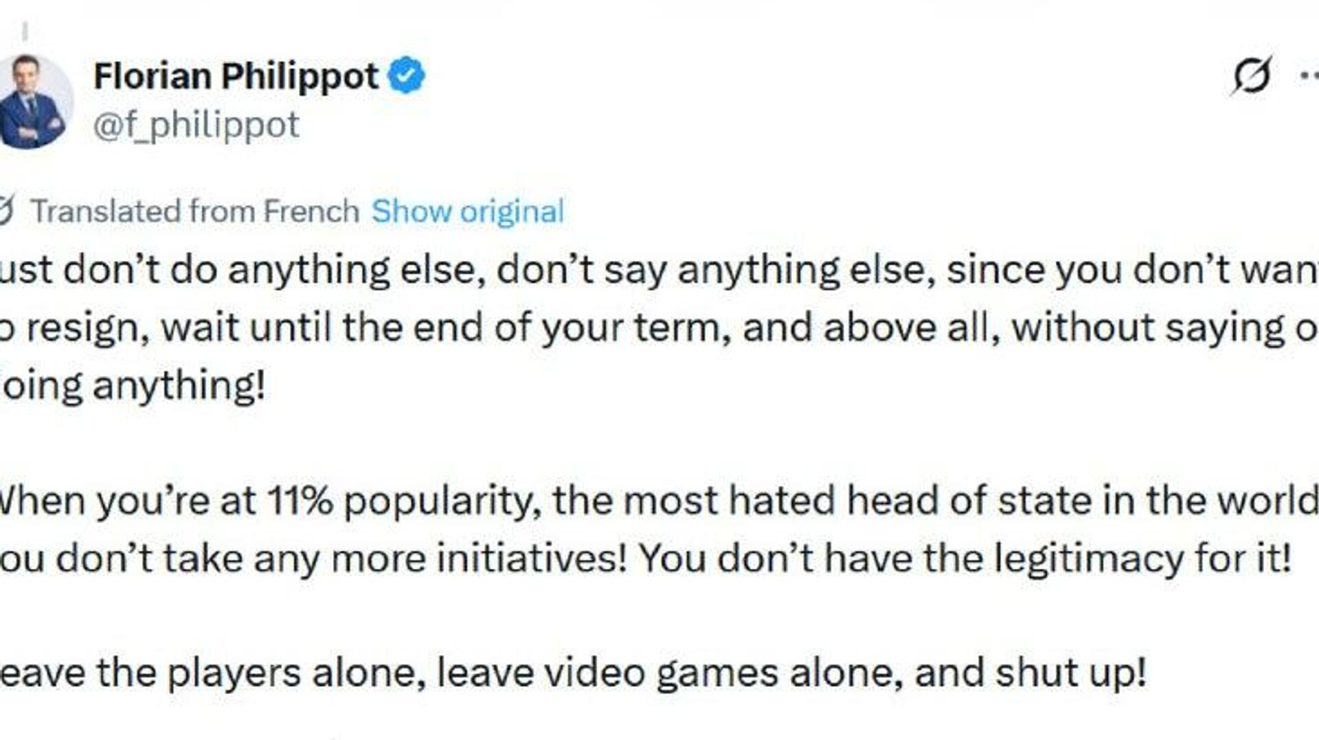 یادآوری می کنیم، که این سخنان پاسخی بود به توئیت دراز ماکرون که در آن با اندیشهٔ اعمال کنترل سختگیرانه بر بازیهای رایانهای ور رفته و پرسیده بود: «تأثیر برخی محتواها و شیوههای استفاده بر جوانان چیست؟»