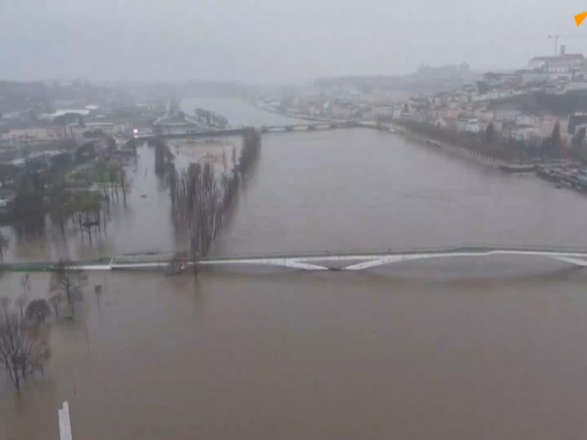 بر اثر بارانهای سیلآسا و شکستن بند رودخانه موندِگو در پیرامون کویمبرا، بخشی از بزرگراه A1 پرتگال، شاهراه پیوند لیسبون و پورتو، فرو ریخت.