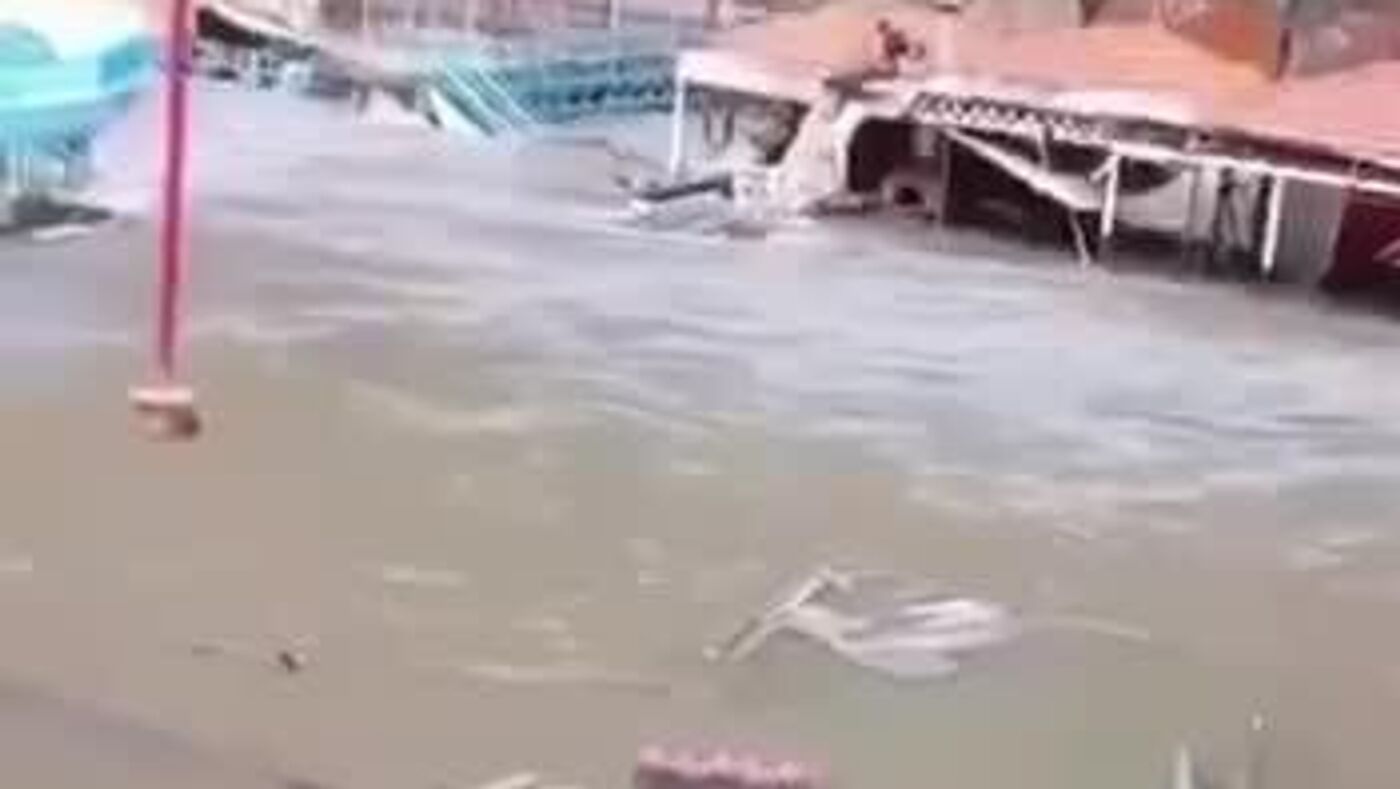 در آلانیا، باران شدید خیابانها را فرا گرفت. دو مرد که روی پشت بام پناه گرفته بودند، سگی را که جریان آب او را با خود برده بود، دیدند و توانستند او را به خانه خود برگردانند.