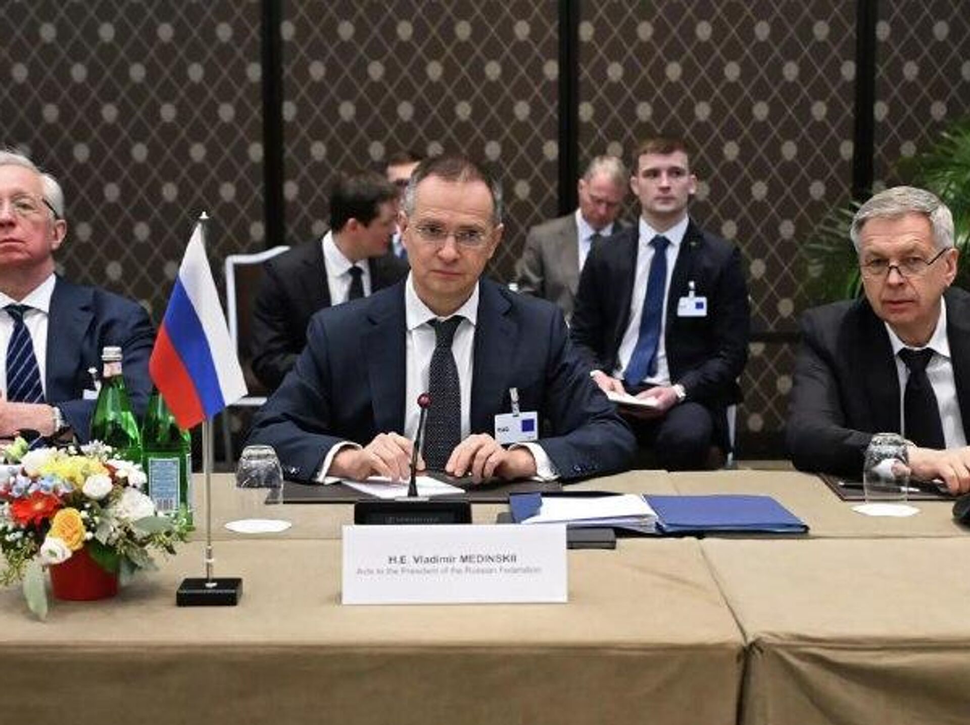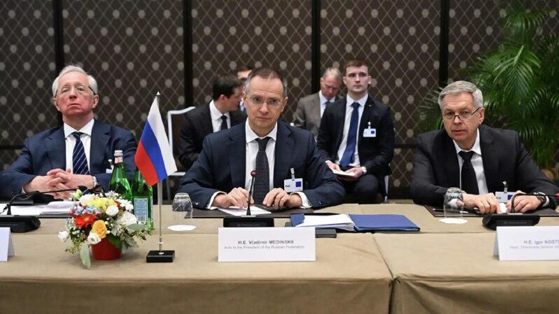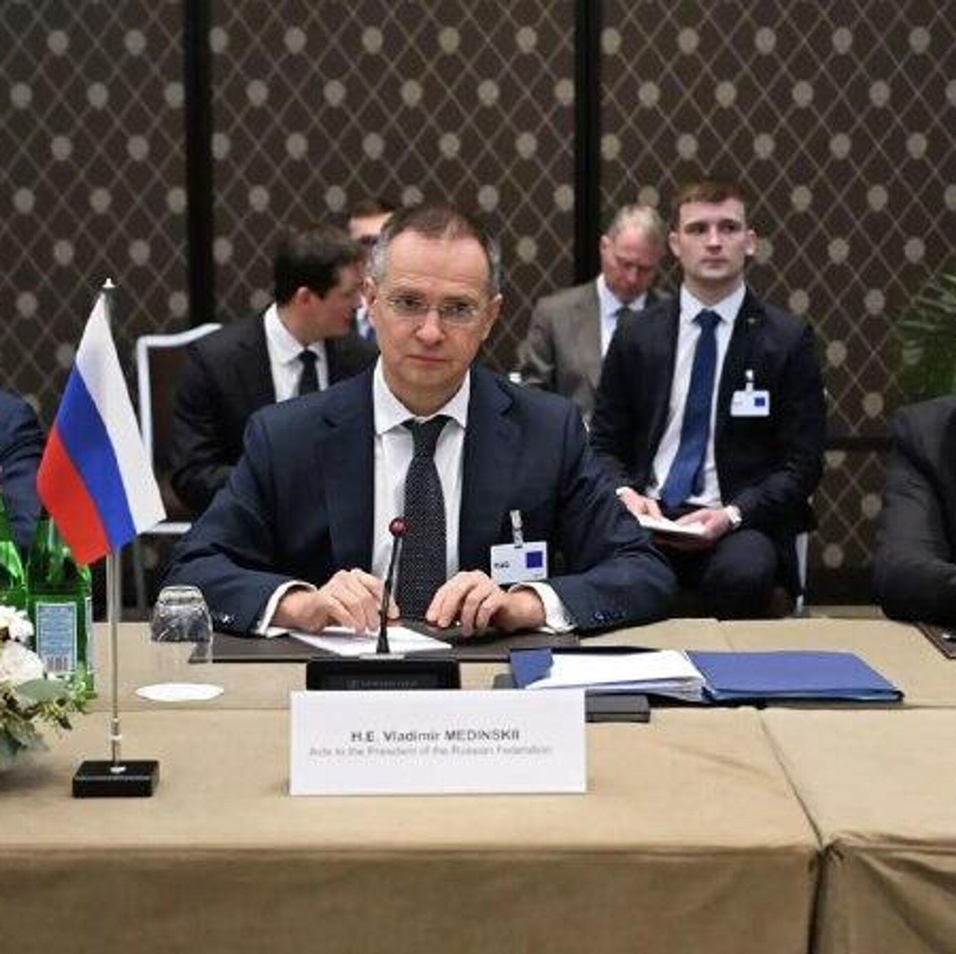 یک منبع در تیم مذاکرهکننده به اسپوتنیک گفت ولادیمیر مدینسکی، دستیار رئیسجمهور روسیه و رئیس هیئت روسی در مذاکرات صلح اوکراین در ژنو، پیش از عزیمت به فرودگاه، دو ساعت مذاکرات پشت درهای بسته در محل نشست سهجانبه برگزار کرد.