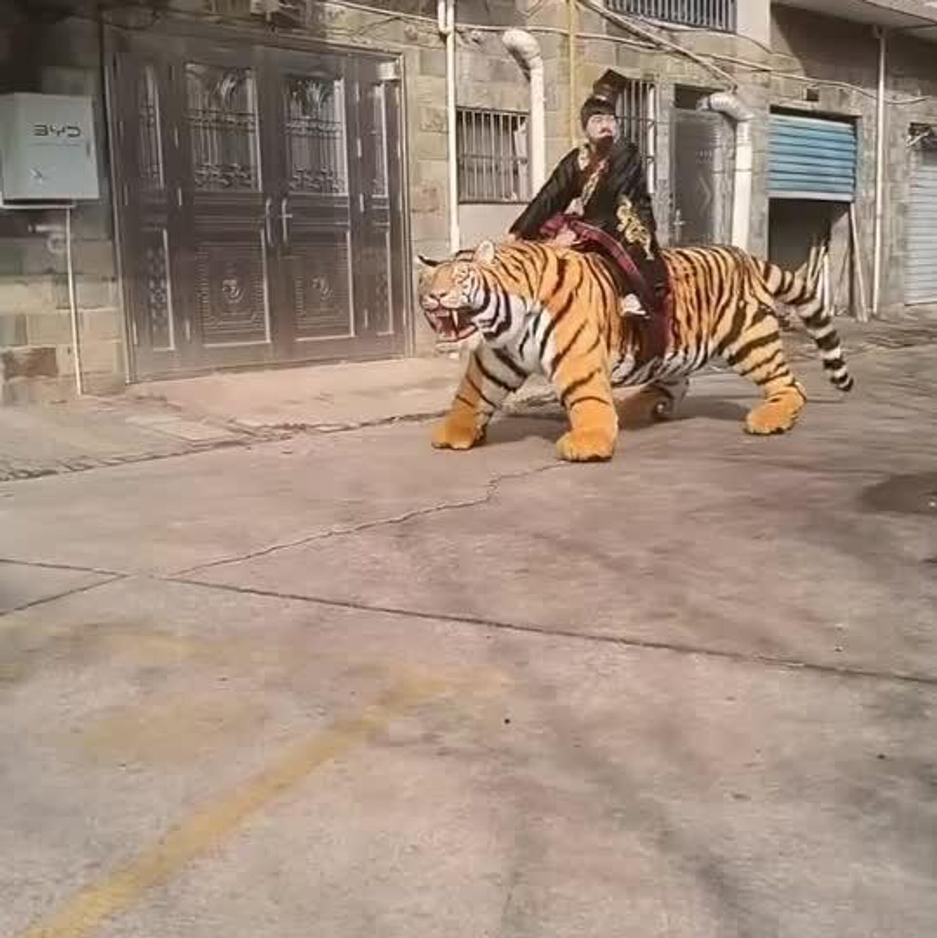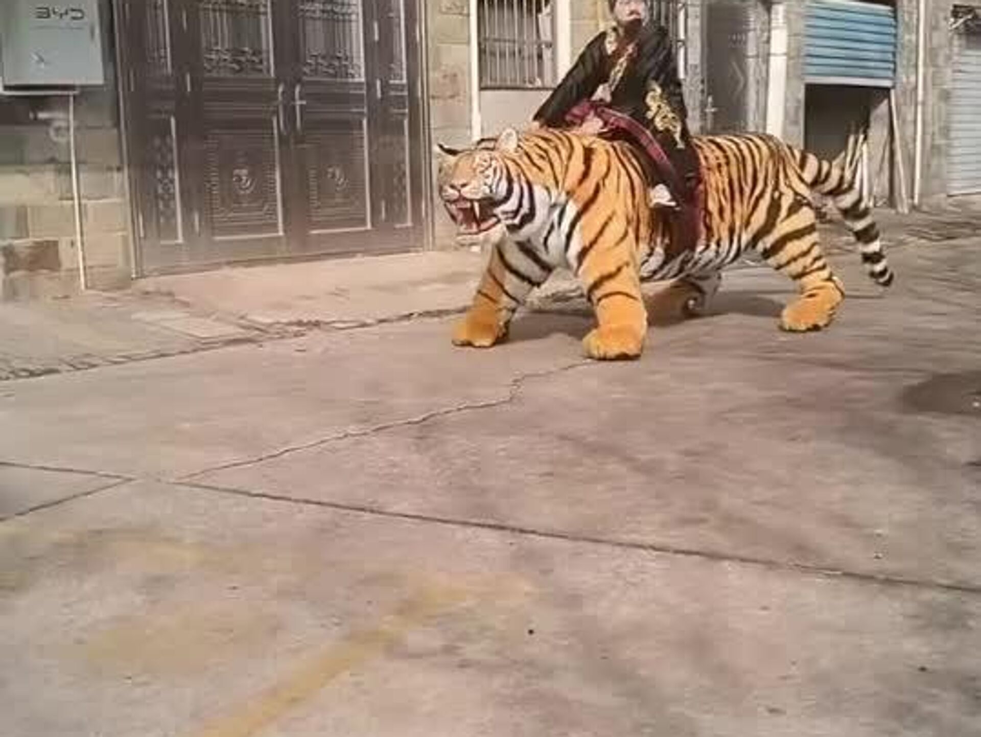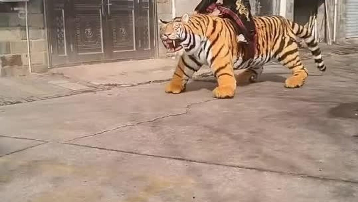ترس سگ زرینموی بیچاره از ببر رباتیک چینی؛ جایی برای گریز نیست!