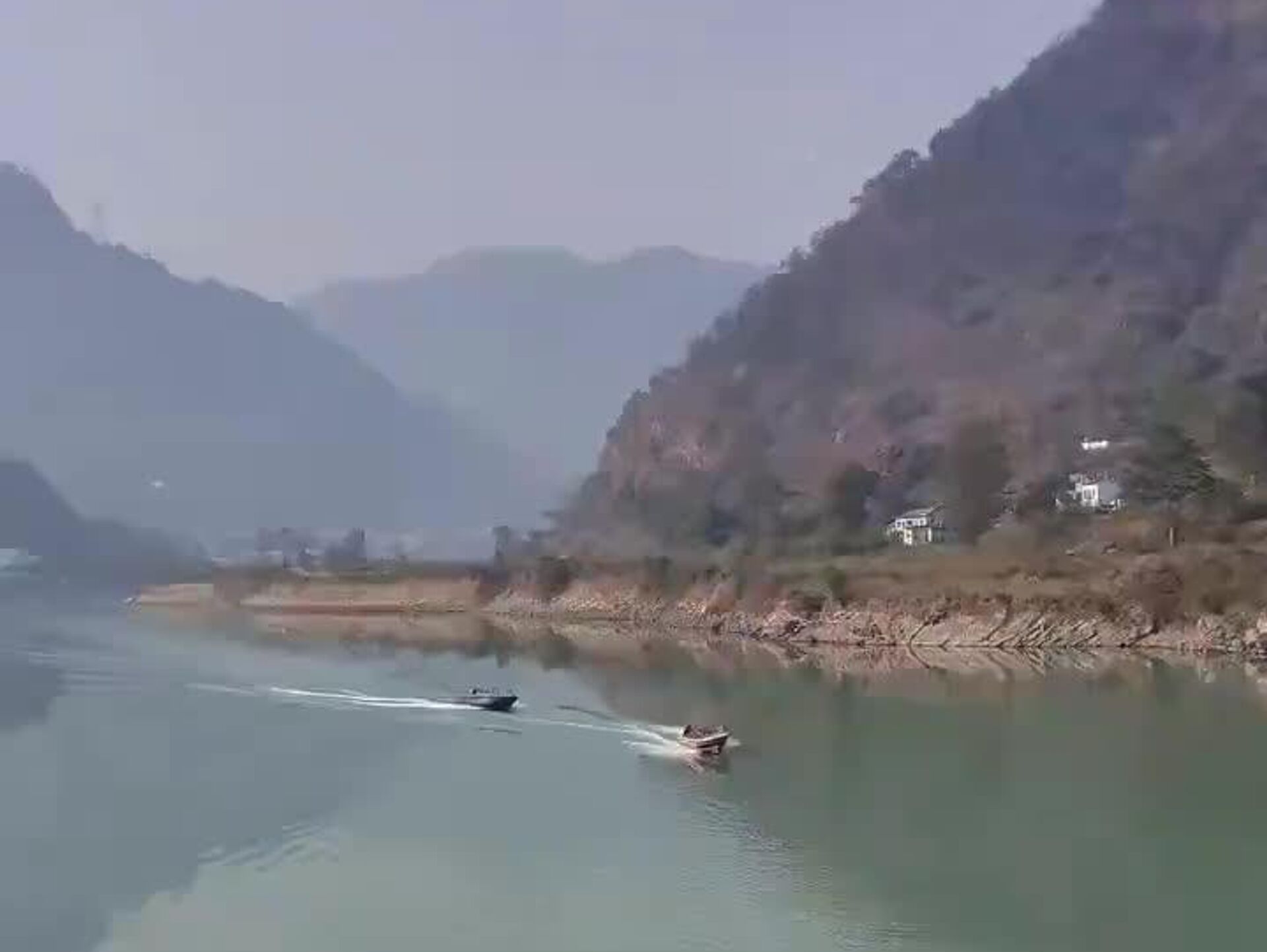 در هند، دو قایق موتوری در وسط یک رودخانه عریض نتوانستند از کنار هم عبور کنند