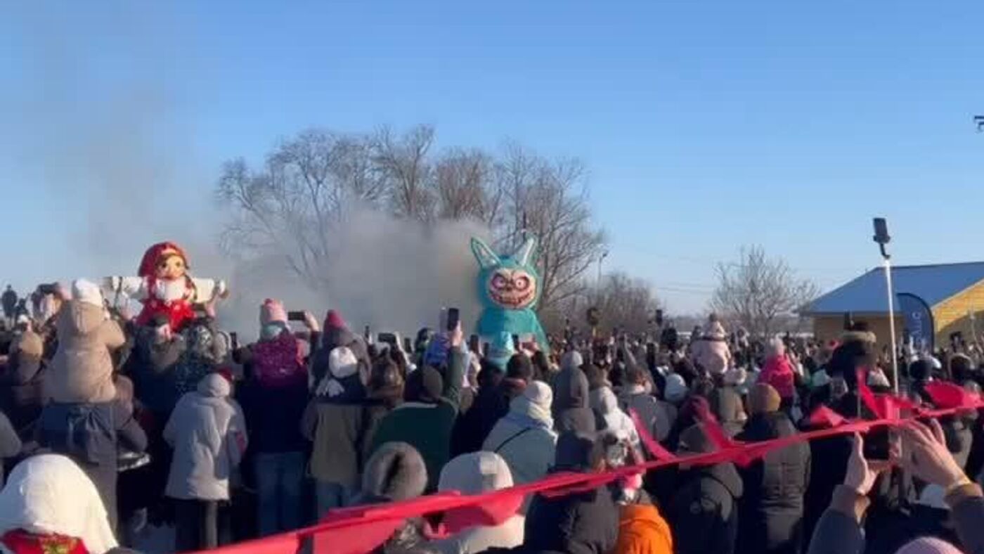 نوار دیداری از سوزاندن پیکره لابوبو در لیپتسک روسیه در جشن ماسلنیتسا