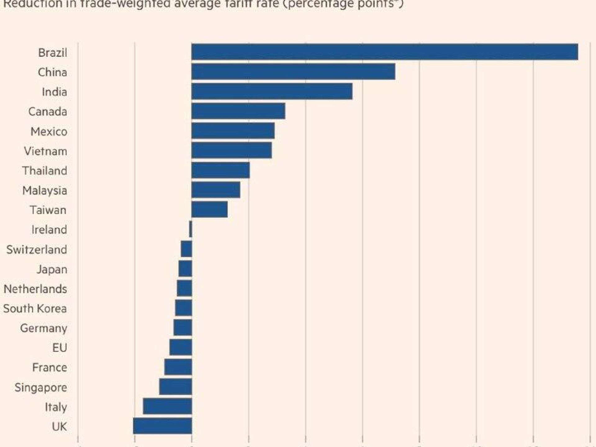 رسانههای غربی گزارش میدهند که از سیاست تعرفهای جدید آمریکا بیشترین سود نصیب برازیل و چین خواهد شد