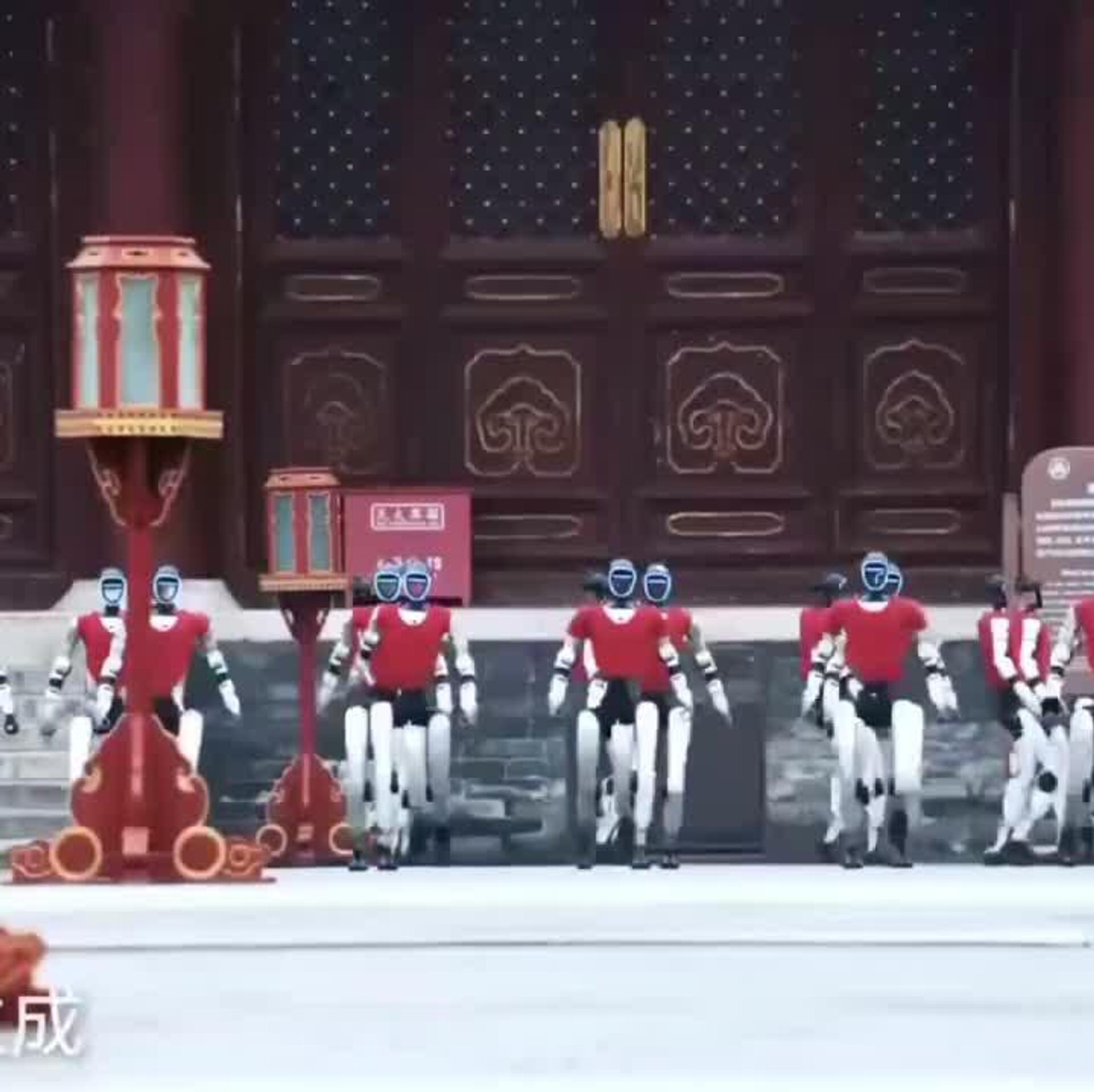 49 ربات انساننمای جی-1 از شرکت یونتری (Unitree) بهصورت هماهنگ و در نزدیکی نیایش گاه بهشت در پکن، به اجرای هنرهای رزمی پرداختند.