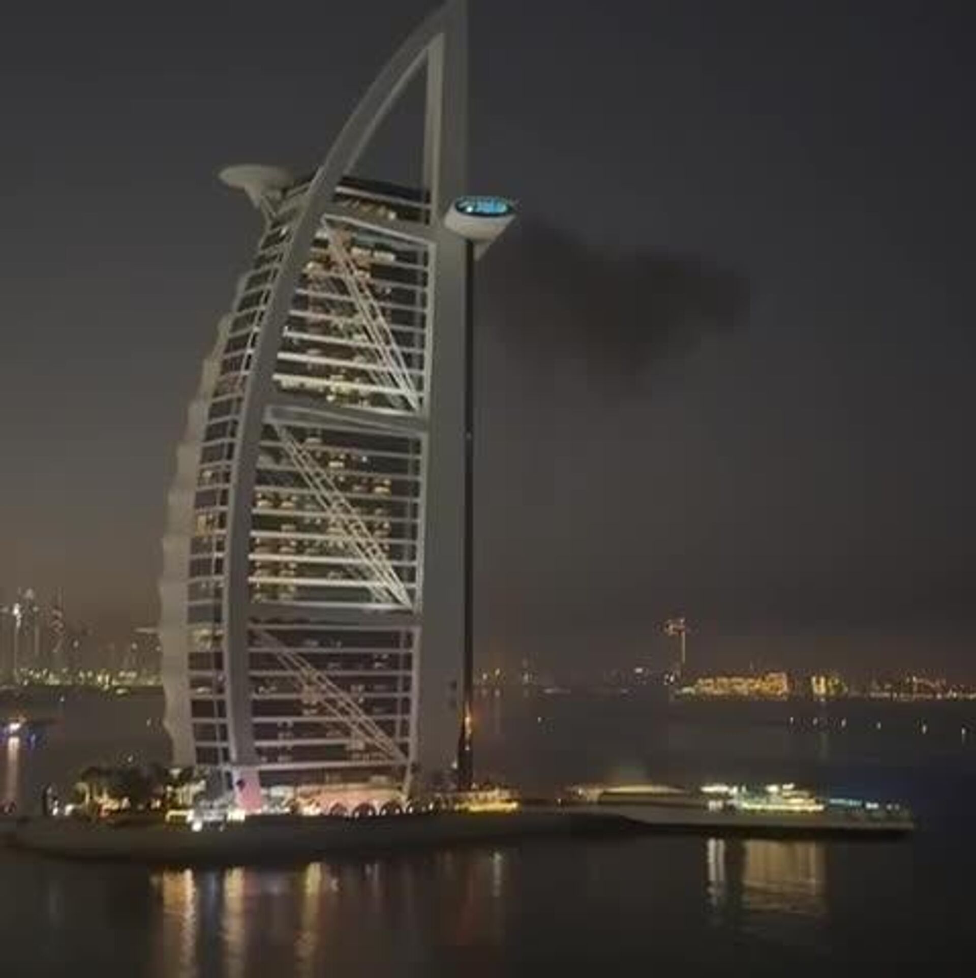همزمان با افزایش تنشها در منطقه، شبکههای اجتماعی صحنههایی از دود و آتش در دبی را منتشر کردهاند. برخی کاربران مدعی شدهاند که یک فروند پهپاد ایرانی به هوتل پنجستاره برجالعرب (مشهور به «بادبان») اصابت کرده است.