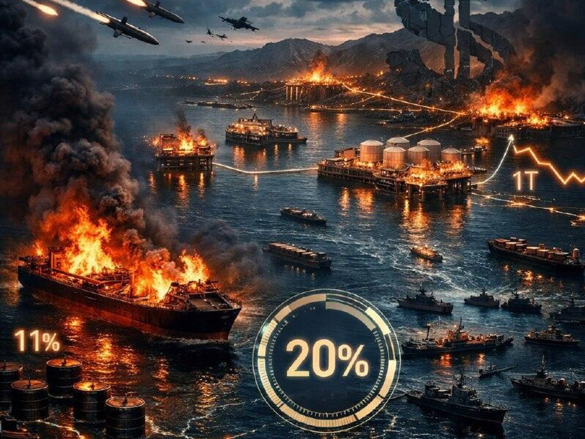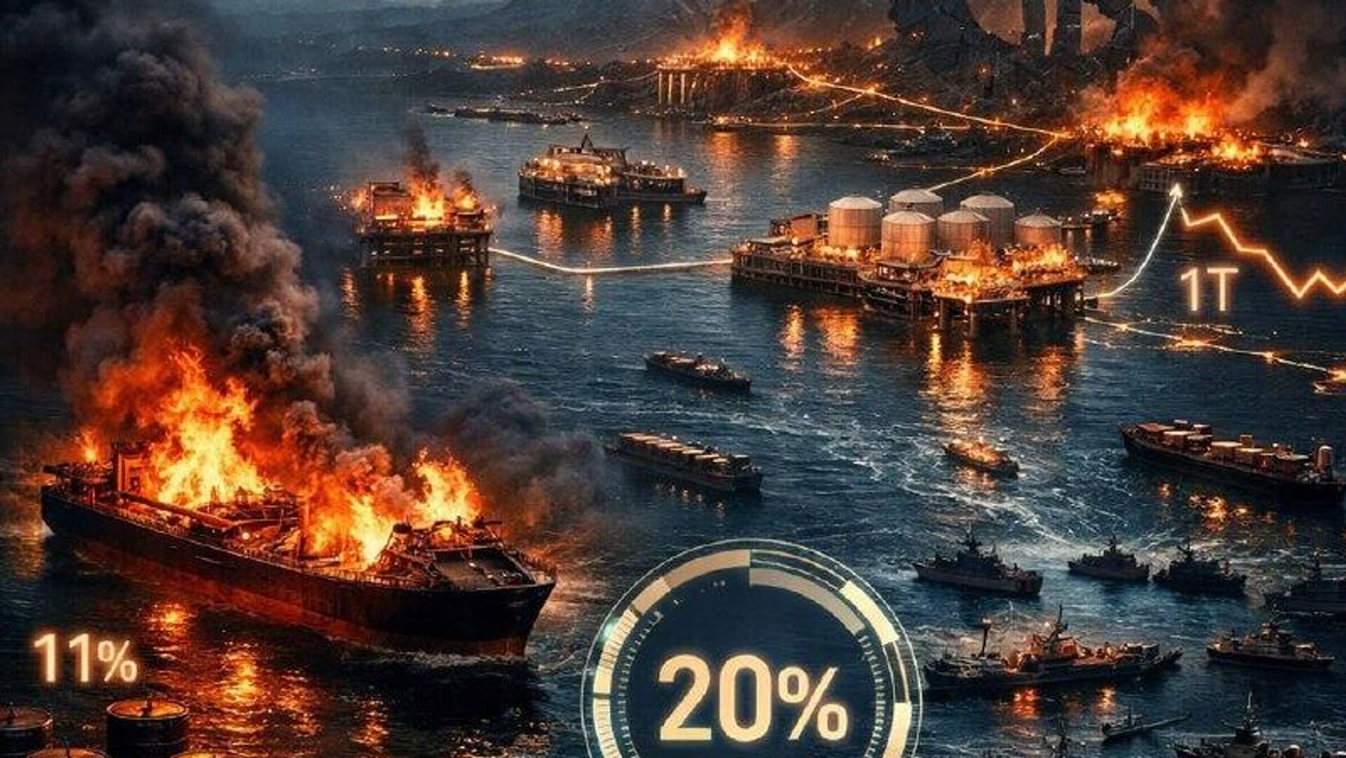 تردد کشتیها در تنگه هرمز متوقف شده و حدود 20 درصد از عرضه جهانی نفت در این گذرگاه گرفتار شده است.