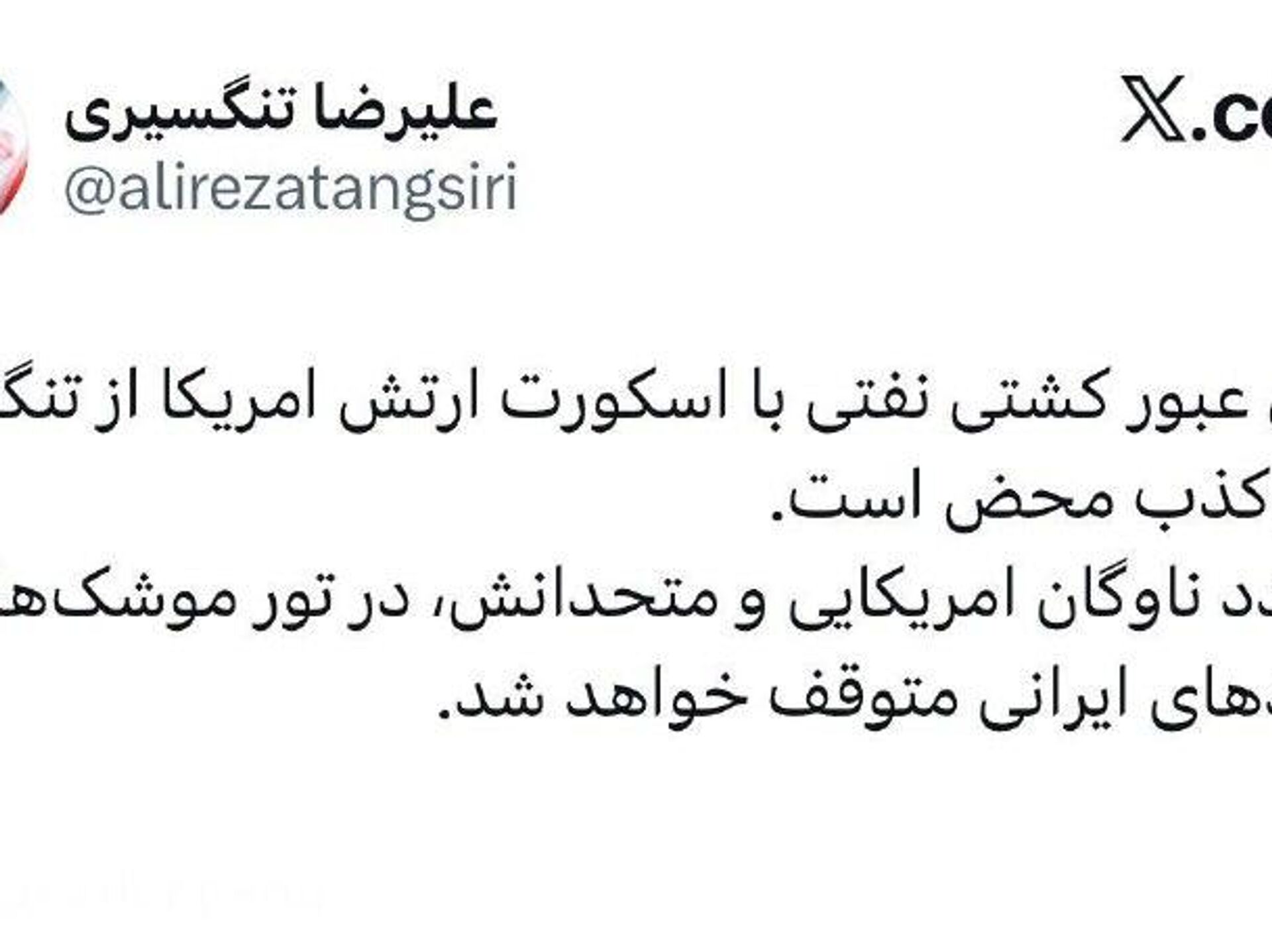 پیشتر کریس رایت، وزیر انرژی آمریکا، در ایکس از عملیات اسکورت یک نفتکش از طریق تنگه هرمز خبر داده بود، اما حدود نیم ساعت بعد این پیام را بدون ارائه توضیحی حذف کرد.