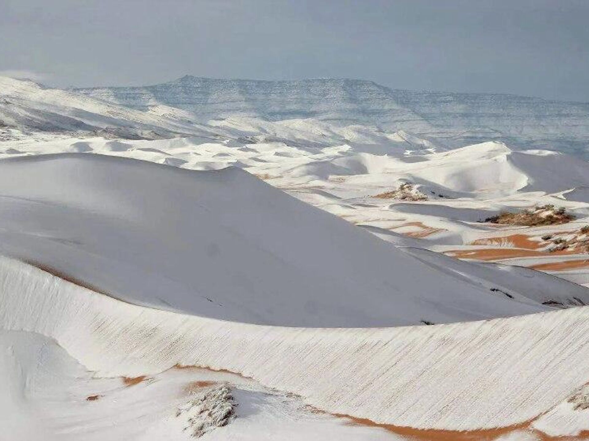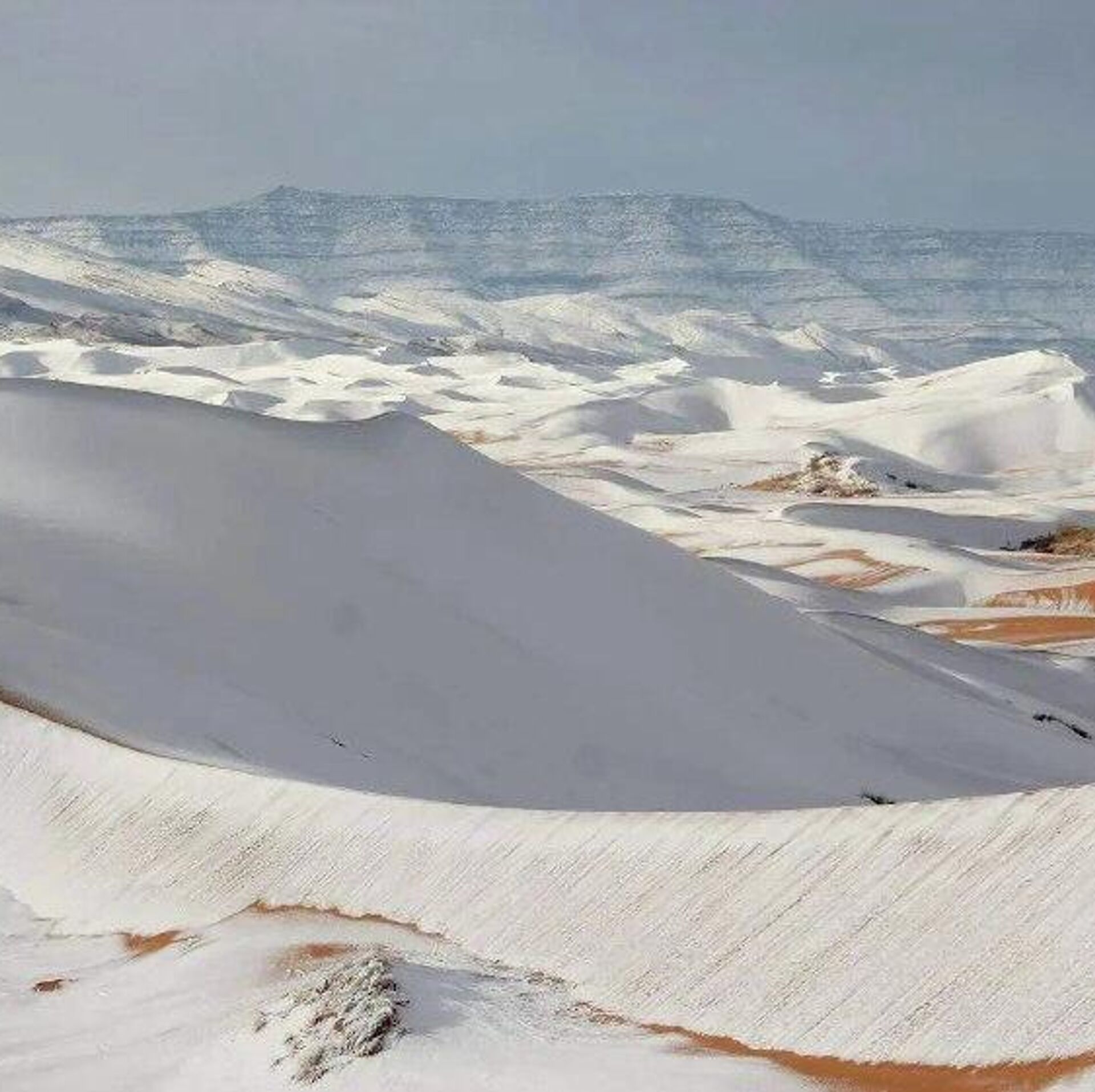 برف، تپههای شنی نزدیک شهر عین صفره در الجزایر را پوشانده است، جایی که به دلیل نزدیکی به کوهها، دمای هوا میتواند در شب به زیر صفر برسد. هفتمین بار در 40 سال گذشته، برف در این صحرا باریده است.