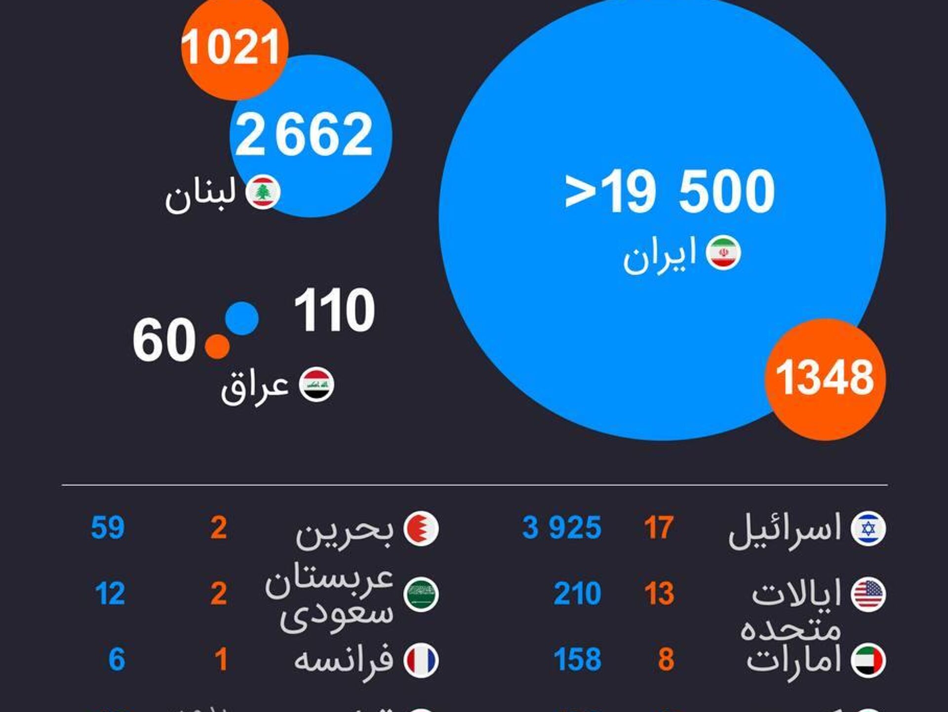 شمار قربانیان عملیات نظامی در برابر ایران برای داده های بیشتر داده نمایی تازهای اسپوتنیک را ببینید.ما را در سایت و تلگرام اسپوتنیک دنبال کنید Sputnik Afghanistan | Telegram