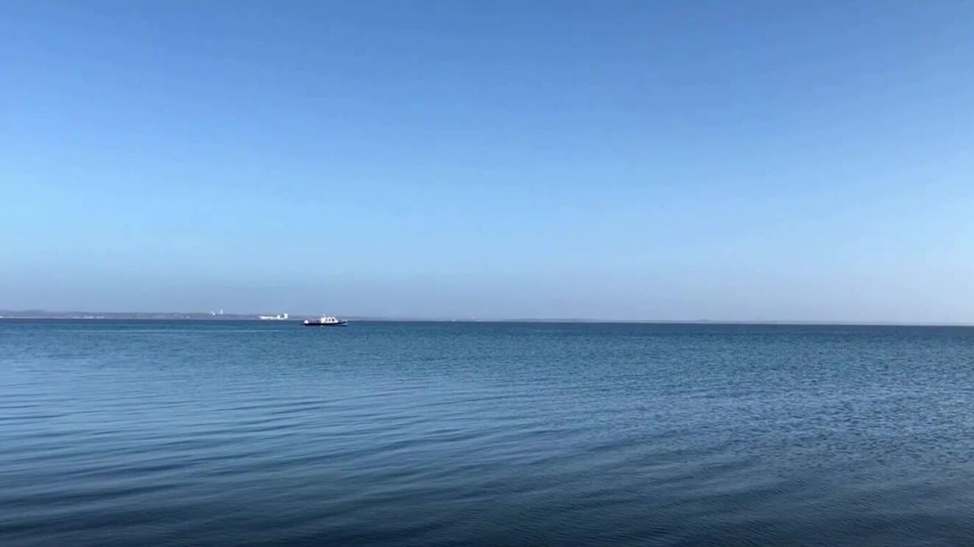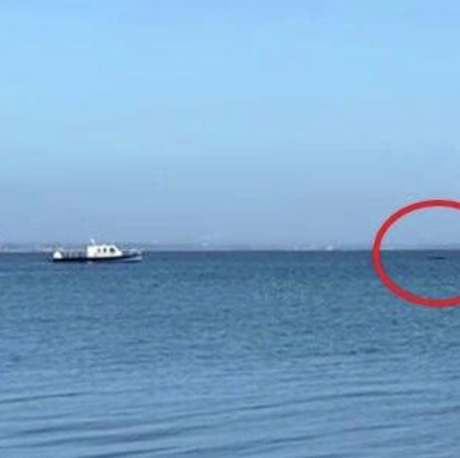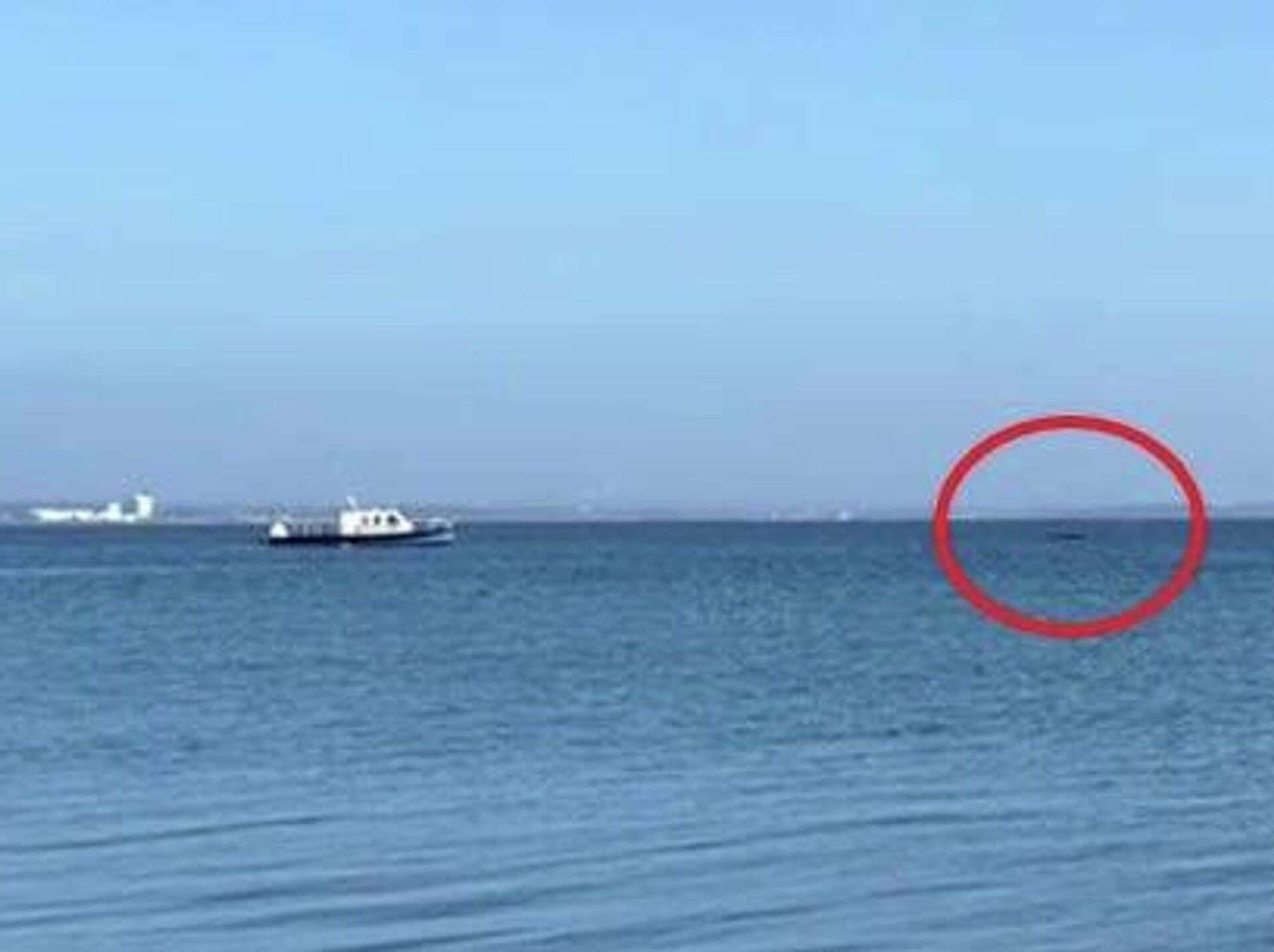 ◻در ابتدای ویدئو، نهنگ برای مدت کوتاهی در مقابل قایق پلیس آبی که آن را اسکورت میکند، به سطح آب بیرون آمد.