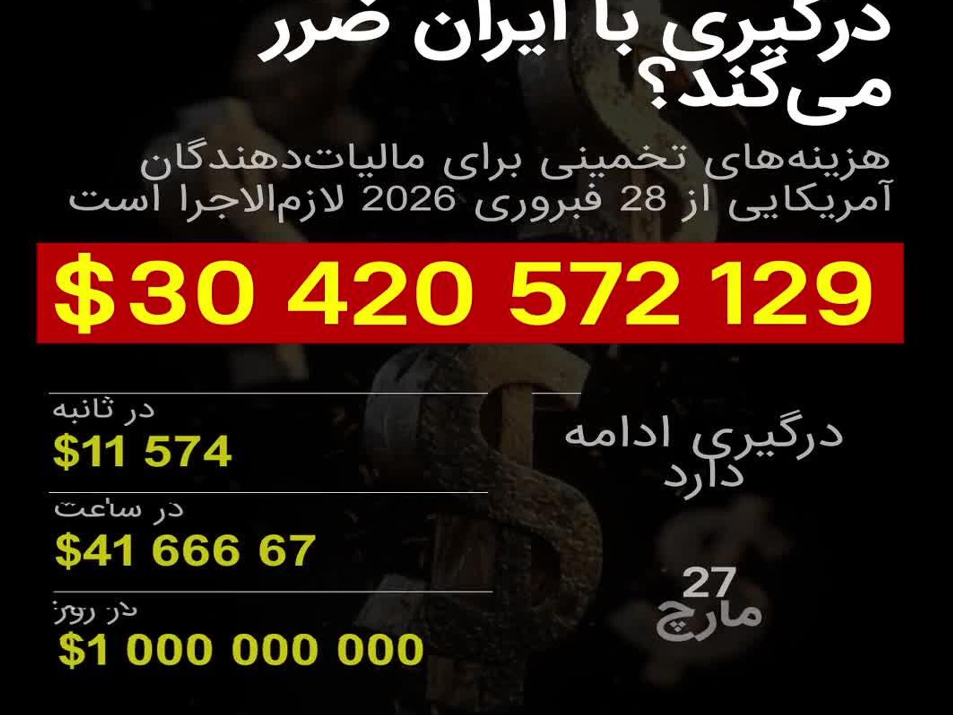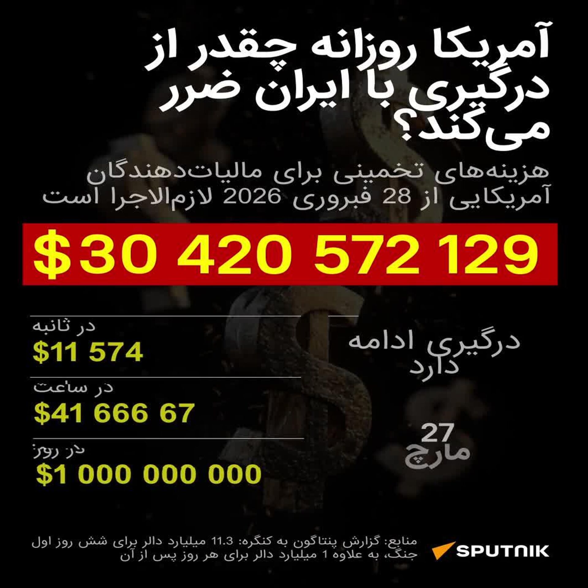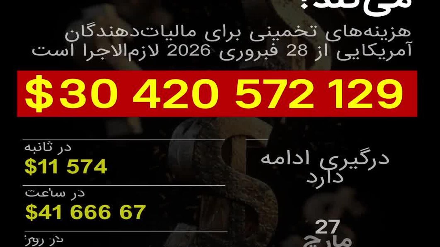 به گفته کارشناسان، آمریکا روزانه تقریباً یک میلیارد دلار برای جنگ علیه ایران هزینه میکند.