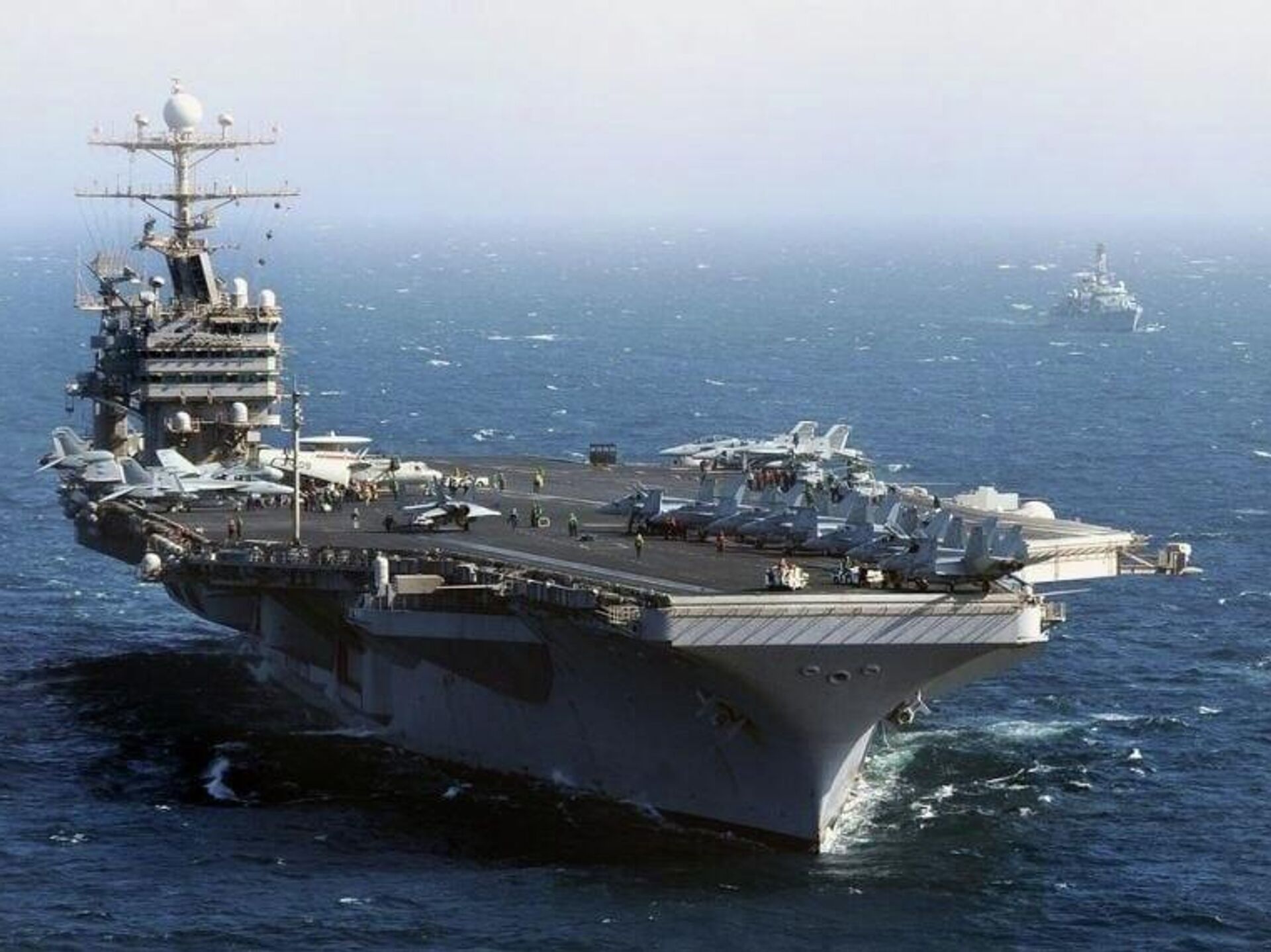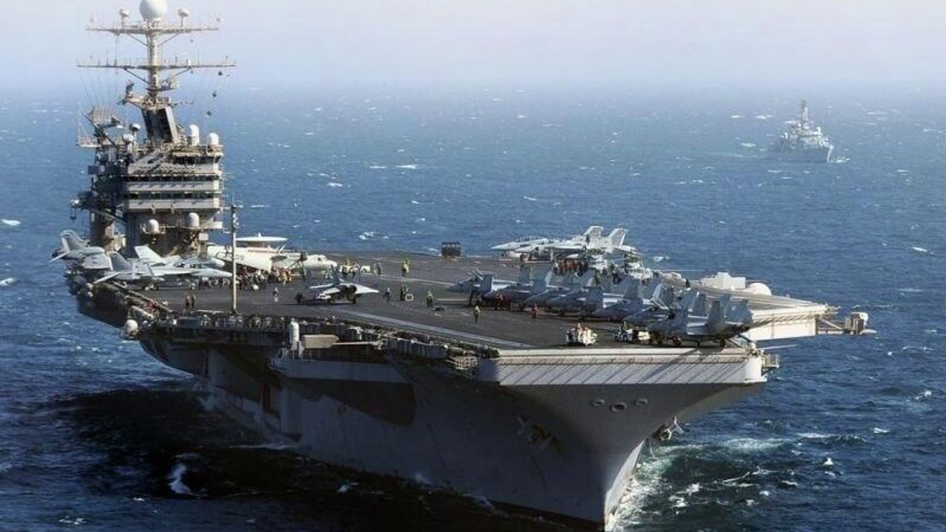 دیده می شود ناو یواس اس جورج اچ. دبلیو. بوش برای نیروبخشی حضور نظامی در این منطقه فرستاده میشود.