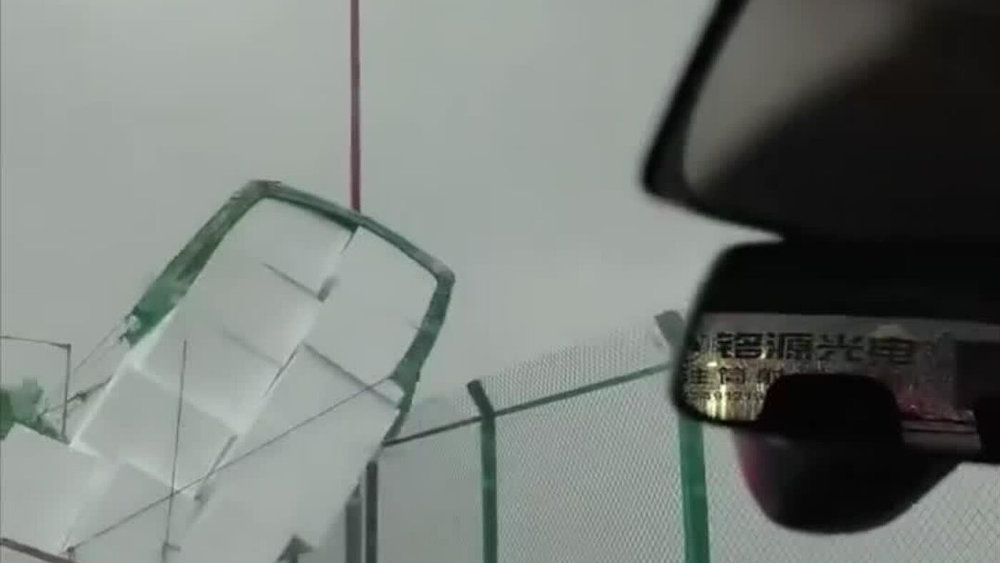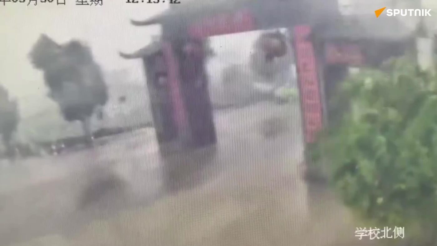 🟠در شهر چائوژو، قدرت طوفان دروازه یک روستا را واژگون کرد و تقریباً یک عابر پیاده را مجروح کرد.