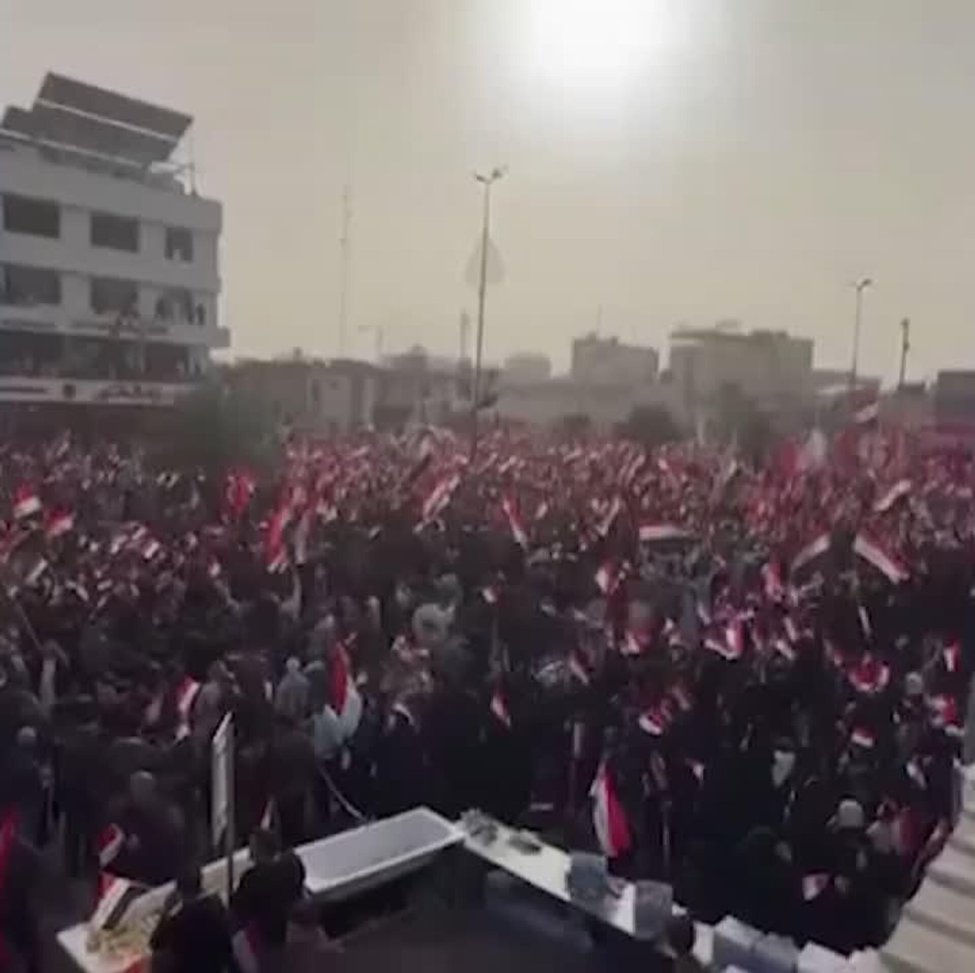 تجمع هزاران عراقی در میدان تحریر بغداد در پشتیبانی از ایران در برابر یورش های امریکا و اسرائیل