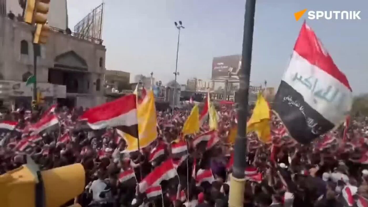 تجمع هزاران عراقی در میدان تحریر بغداد در پشتیبانی از ایران در برابر یورش های امریکا و اسرائیل هزاران شهروند عراقی در میدان تحریر بغداد گرد هم آمدند تا در برابر جنگ امریکا و اسرائیل در برابر ایران راهپیمایی کنند.شرکتکنندگان در این گردهمایی، پشتیبانی قاطع خود را از ایران و متحدان منطقهای آن اعلام کردند.ما را در سایت و تلگرام اسپوتنیک دنبال کنید Sputnik Afghanistan | Telegram