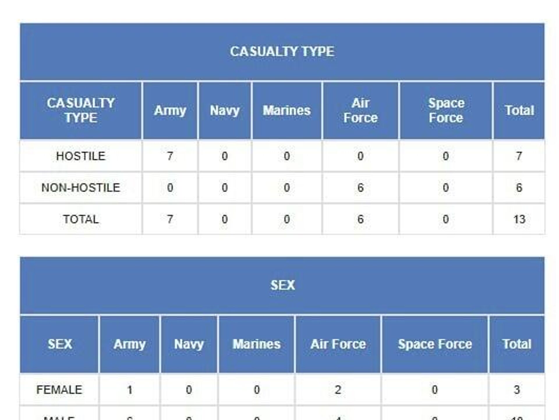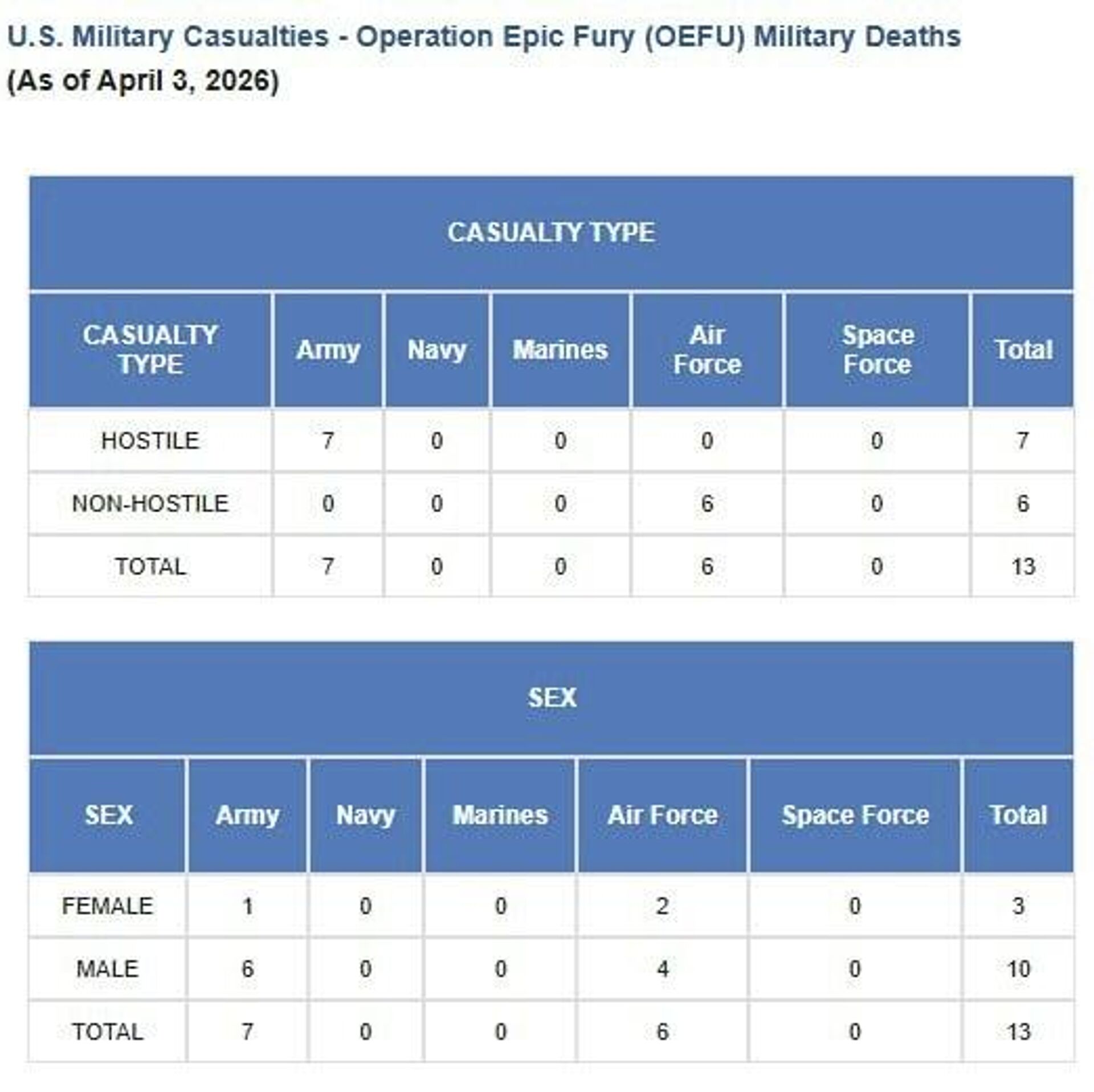 پنتاگون دادههای در پیوند به تلفات ایالات متحده در جنگ در برابر ایران را منتشر کرد.