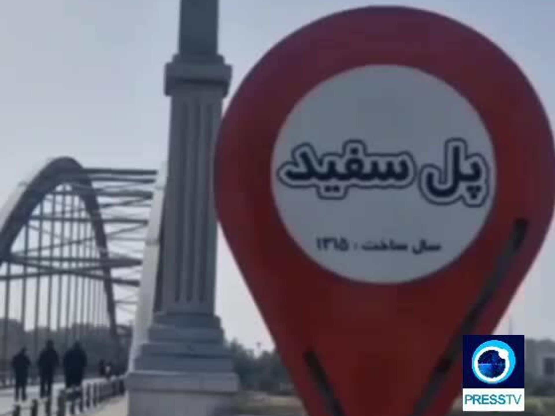 مقاومت غیرخشونتآمیز در برابر تهدید خارجی: پس از تهدیدهای امریکا و اسرائیل مبنی بر ویران کردن زیرساختهای غیرنظامی و حیاتی ایران، میهن دوستان ایرانی در پل سفید اهواز در جنوب ایران یک زنجیره انسانی تشکیل دادند.