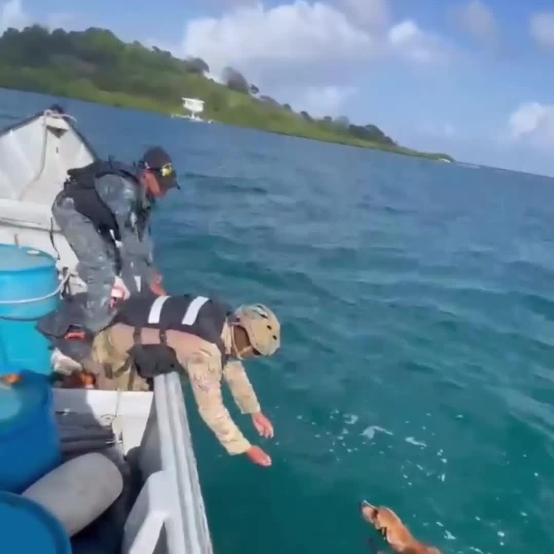 این سگ در حین گشتزنی مشاهده شد، توسط یک قایق گرفته شد و به ساحل آورده شد.