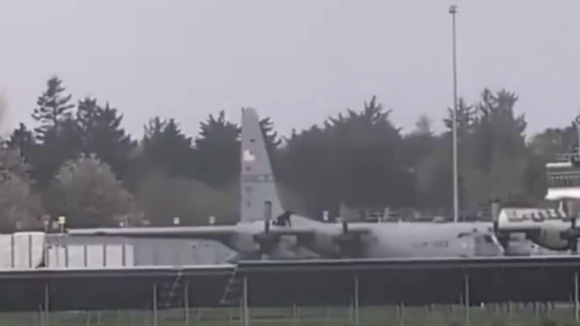 یک فروند هواپیمای ترابری نظامی امریکایی مدل C-130 متعلق به نیروی هوایی ایالات متحده، پس از آنکه مردی به فرودگاه شانون در غرب ایرلند یورش برد و با تبر به آن یورش برد، دچار زیان شد.