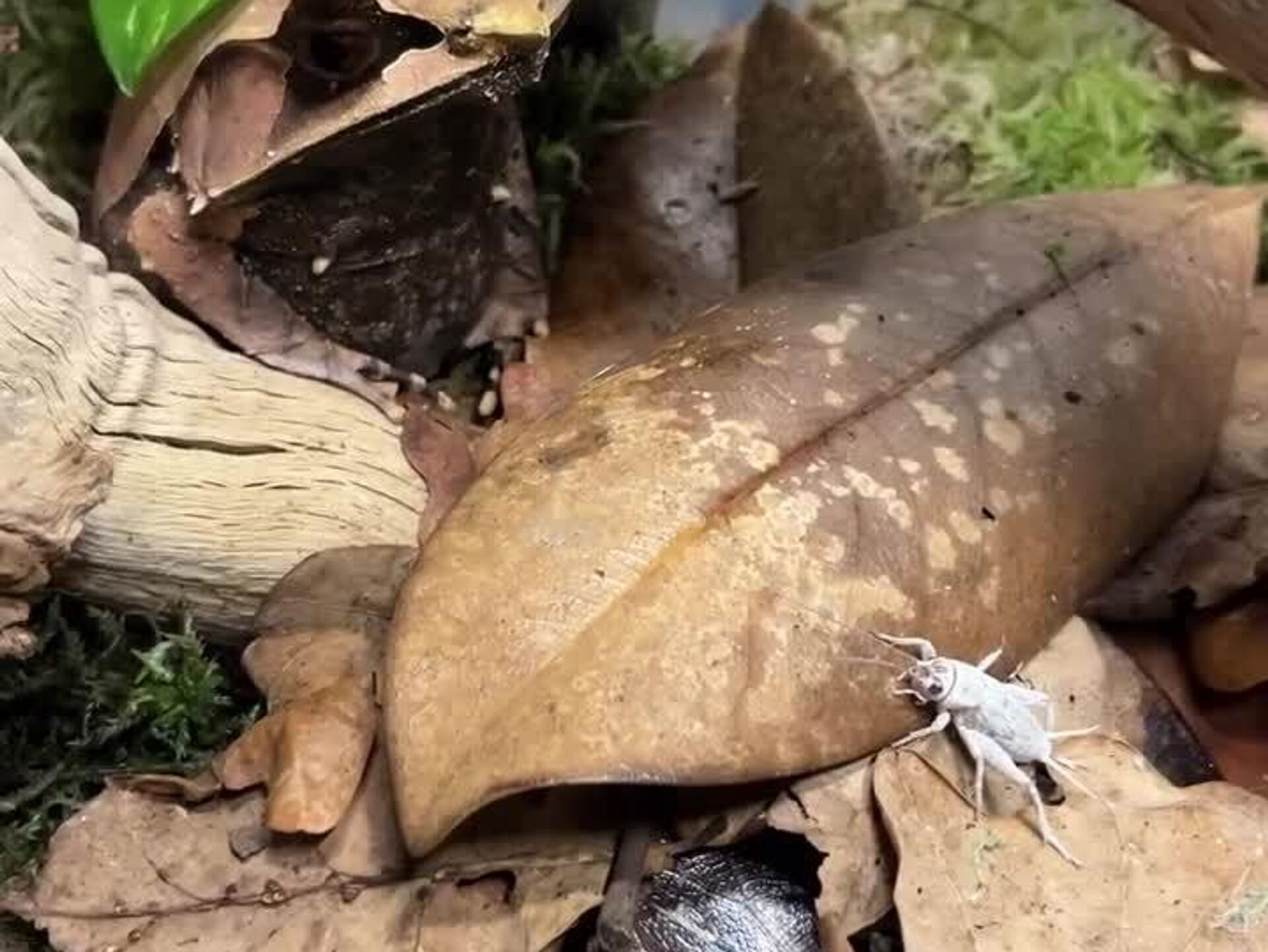 بلعیده شدن یک جیرجیرک توسط قورباغه شاخدار سوژه شد