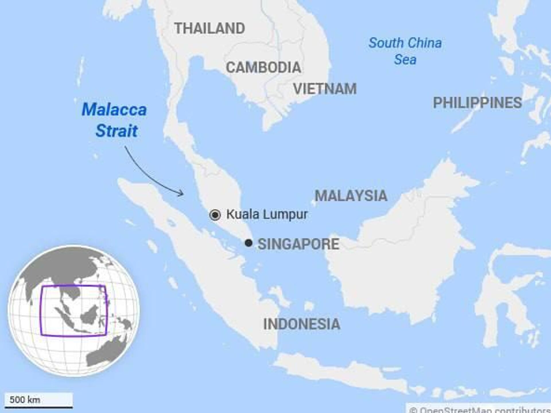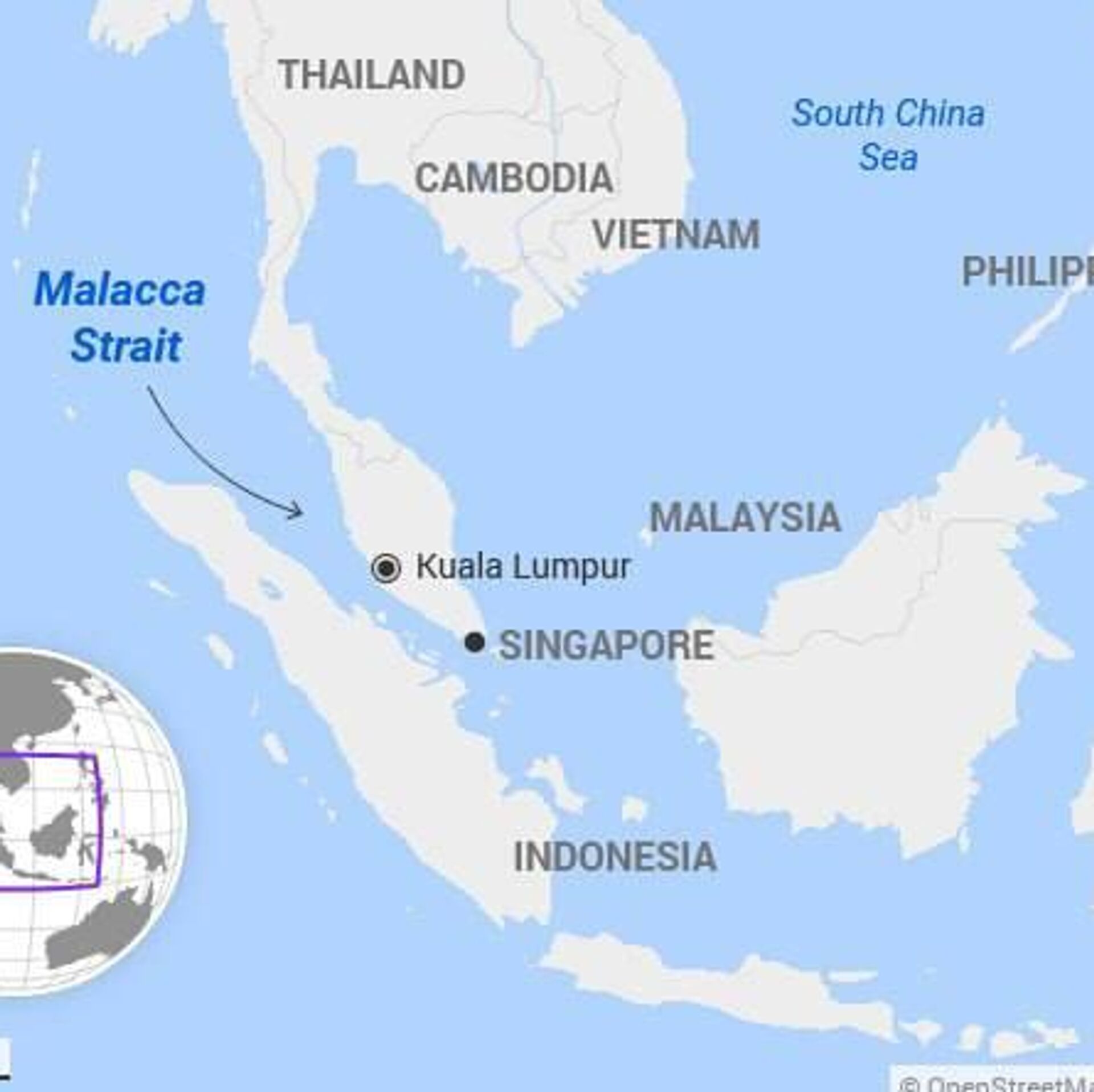 تنگه مالاکا یک «گلوگاه» باریک (2.8کیلومتر در باریکترین نقطه) است که اقیانوس هند را به دریای چین جنوبی (و بنابراین اقیانوس آرام) متصل میکند.