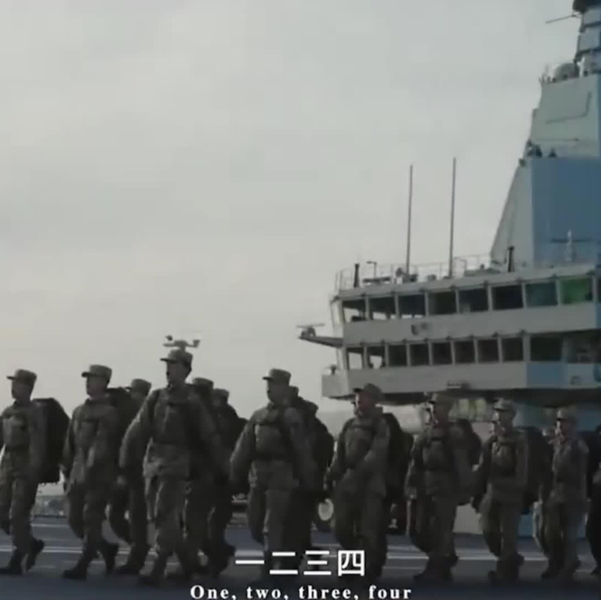 ویدئویی که به مناسبت هفتاد و هفتمین سالگرد نیروی دریایی ارتش آزادیبخش خلق چین منتشر شده، گروهی از نیروهای را نشان میدهد که نامشان شبیه به کلمه چینی "کشتی هستهای" است.